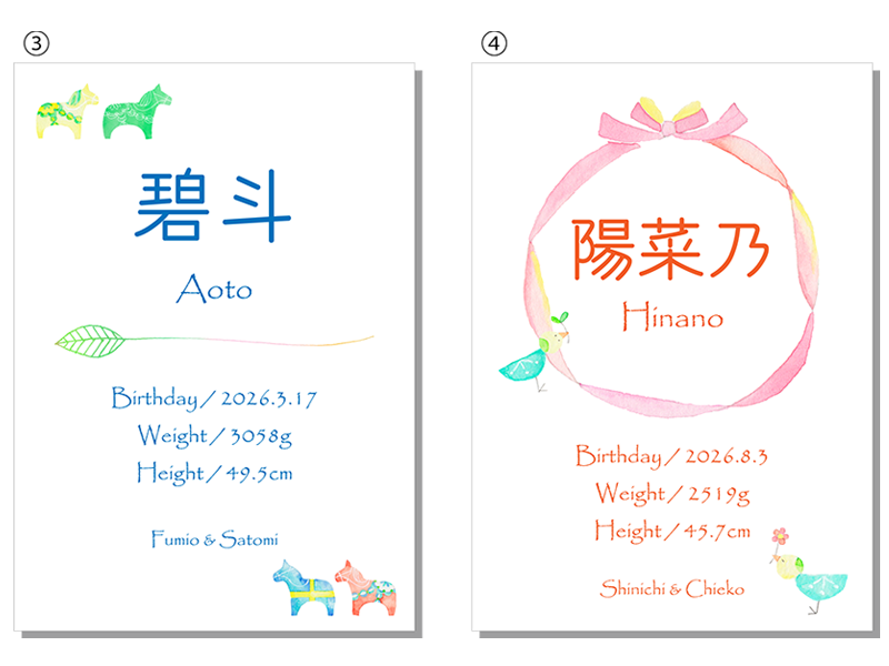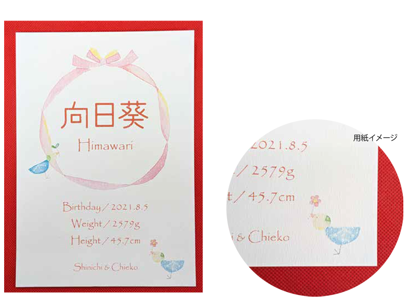お好きなデザインをお選び下さい。 スピード仕上げ対応商品(土・日除く) ファンシーなエンボス紙を使用して おります。 店頭で実物ご覧いただけます。 A4:2,750円(税込) / A5:2,200円(税込)